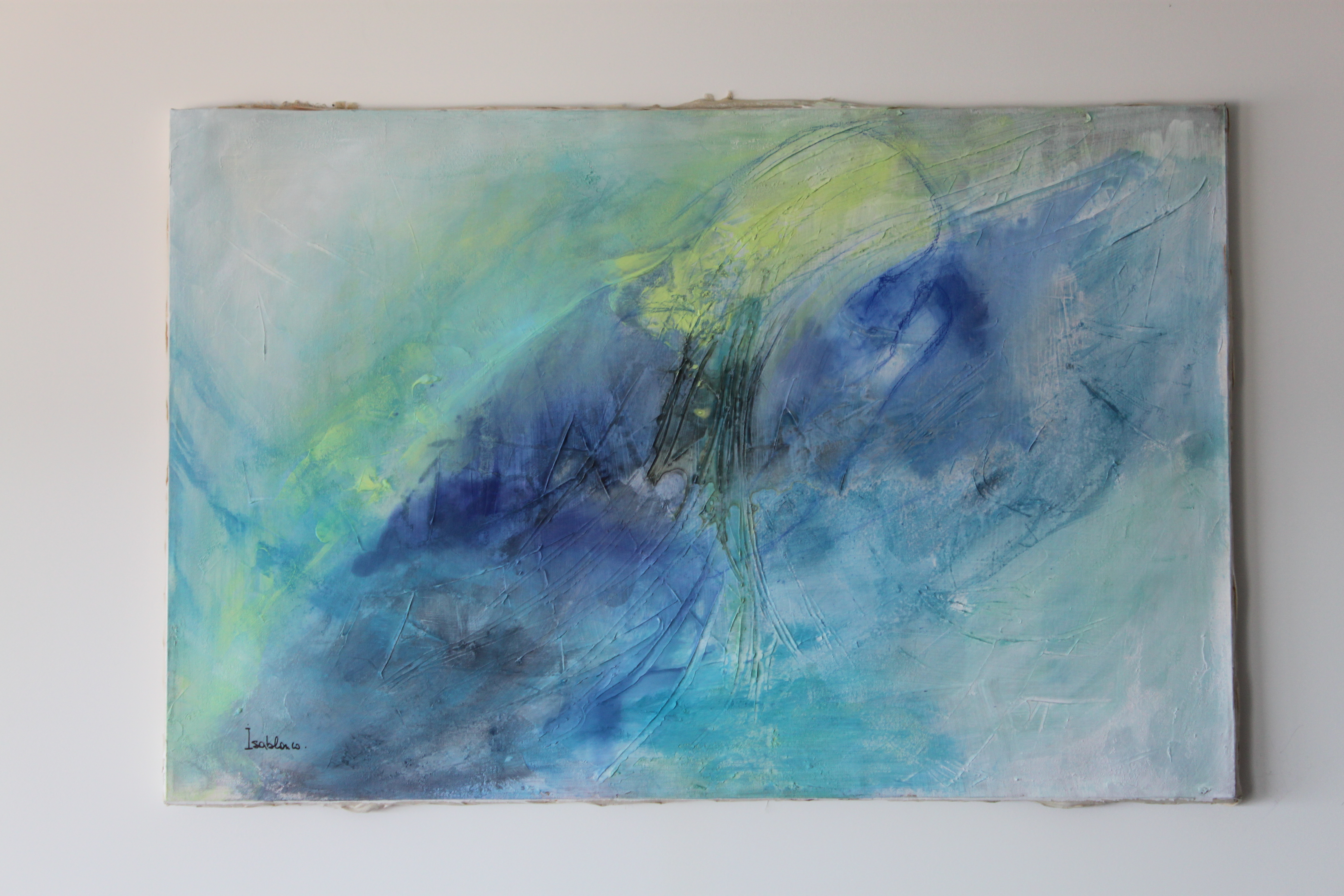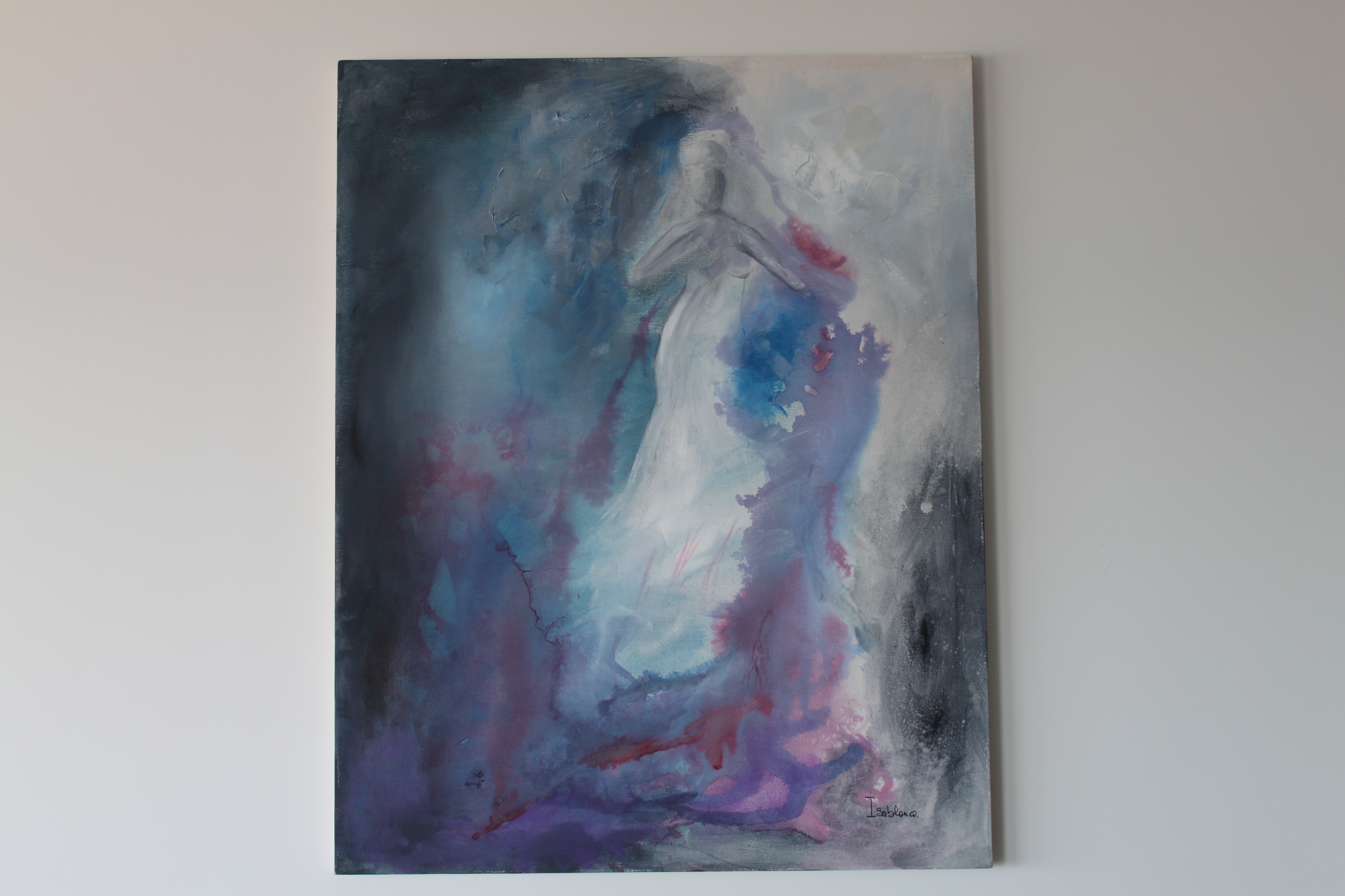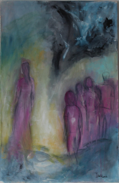 Me inspiro en la mancha de color en donde aparecen formas que se insinúan junto a una dosis de imaginación, mis obras son semi figurativas, la figura humana está casi siempre presente, y particularmente la imagen de la mujer, envuelta en escenarios, participativa a través de una mirada o de una actitud corporal. Trabajo con pinturas acrílicas sobre lienzo y técnicas mixtas.
