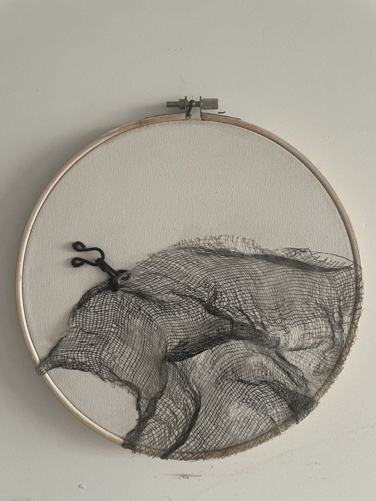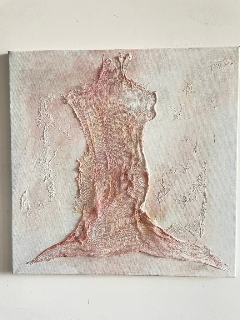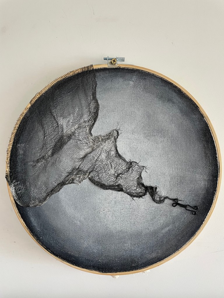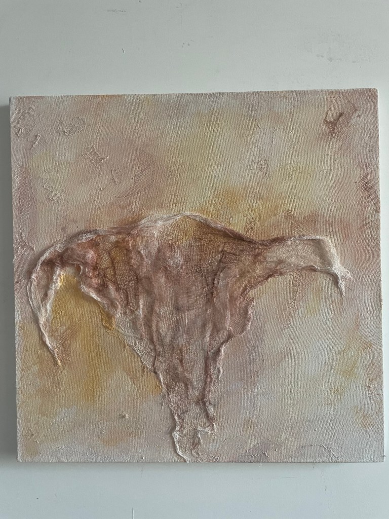 Como artista plástica mujer indago y me cuestiono el lugar que ocupa la mujer y sus roles en el mundo contemporáneo, conectándome con mi interior y con referentes de mis historias personales. Para ello investigo y genero un lenguaje simbólico y/o conceptual que pretende cuestionar la identificación de la mujer con la funcionalidad de sostén del útero.